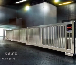 露天的電動伸縮門光澤無限,不易粘塵,不被污染氣體腐蝕,門體采用優(yōu)質不銹鋼或鋁合金等材料制作,采用平行四邊形原理交接,伸縮靈活。